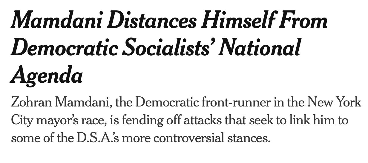 After reading today’s New York Times story on Zohran Mamdani pivoting away from the extreme left, I had to share it.