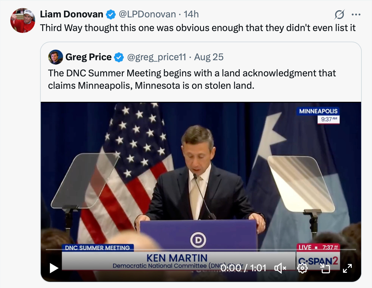 :Ken Martin looks incredibly awkward and goofy introducing the land acknowledgement speaker, who serves as Communications Specialist for the Minnesota House of Representatives. According to her LinkedIn, she is the “Sole staffer for the House People of Color and Indigenous Caucus” whose job requires her to “Respond to incredibly difficult political issues with inclusive and equity-based language that fits the voice of fifteen members.”
