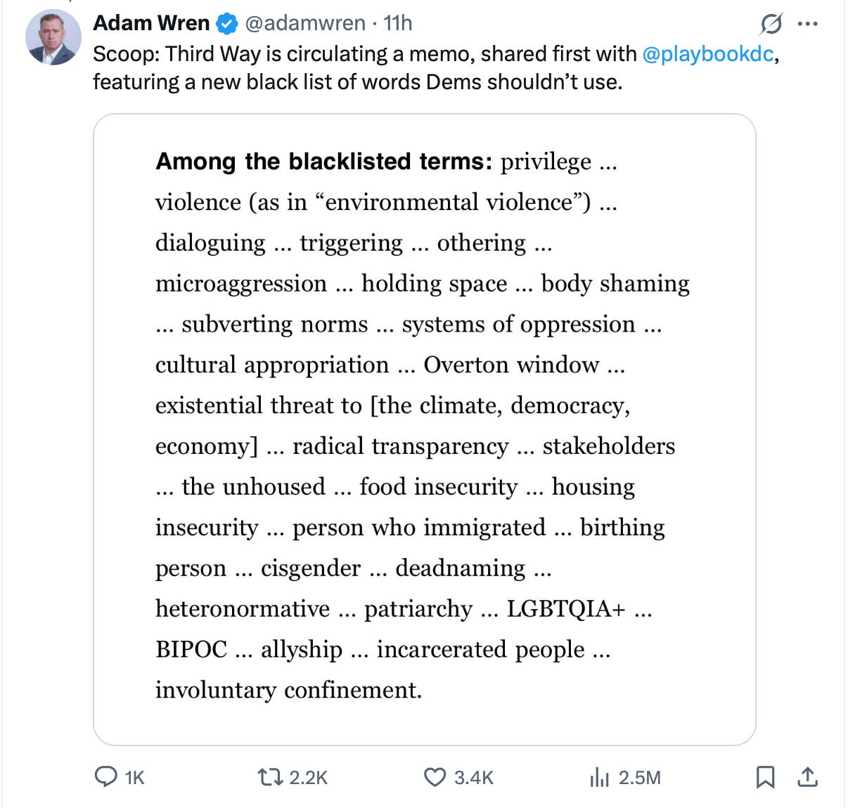 With 899 days until the first presidential primary, Democrats need to gain an edge. And the leftist buzzwords of the last decade - and the newly banned words many replaced - gave Republicans an edge.