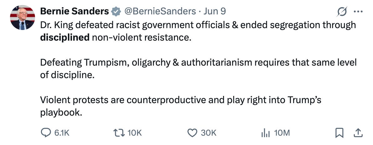 Stanford professor Robb Willer, Director of the Polarization and Social Change Lab had a powerful thread showing how “Bernie is well aligned with the social science literature in this take. There's good reason "non-violent discipline" is core to activist training.”