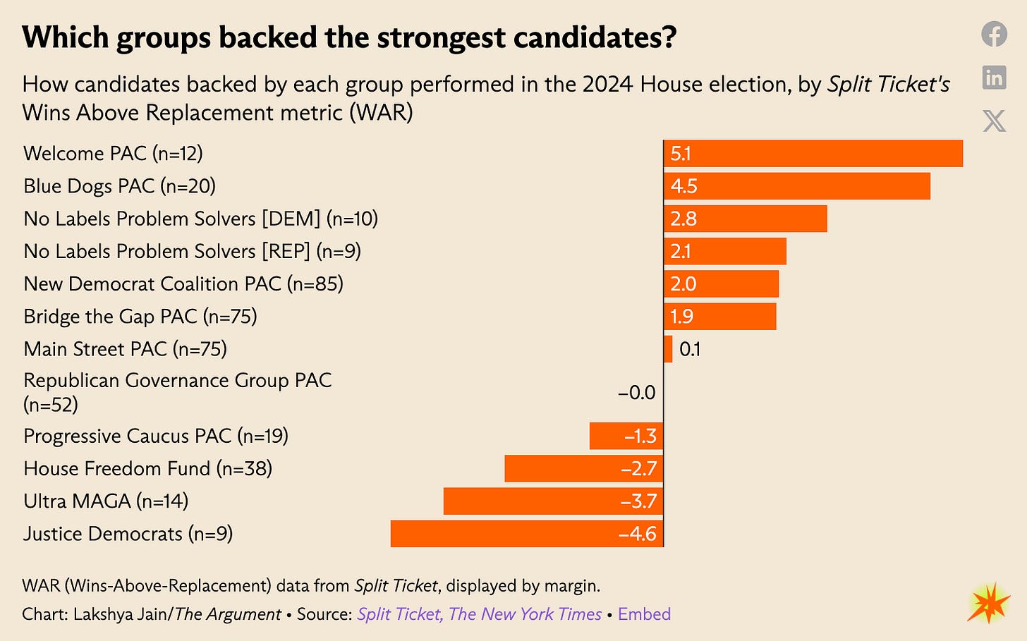 This venture approach to electoral politics has identified overperformers at a higher clip than any other major Democratic (or Republican) entity over the past four years (as The Argument’s Lakshya Jain showed).