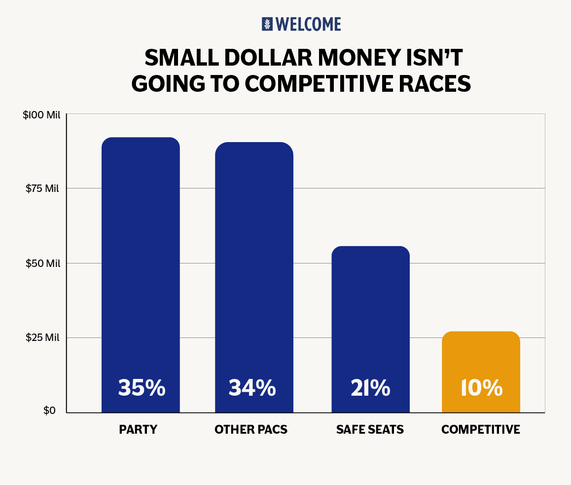 More small dollar donor money went to PACs than to competitive races. The unfortunate reality is that what works for online fundraising doesn’t win races. And if small donors want to see their vision for the world enacted, it starts with taking back the House in 2026. And in order to do that, they need to back the Democrats like Rebecca Cooke and Janelle Stelson who can flip the seats necessary to get to 218, and give to frontline members like Jared Golden and Marie Gluesenkamp Perez, who will need to defend their seats, unlike AOC, who we already know will win next year.
