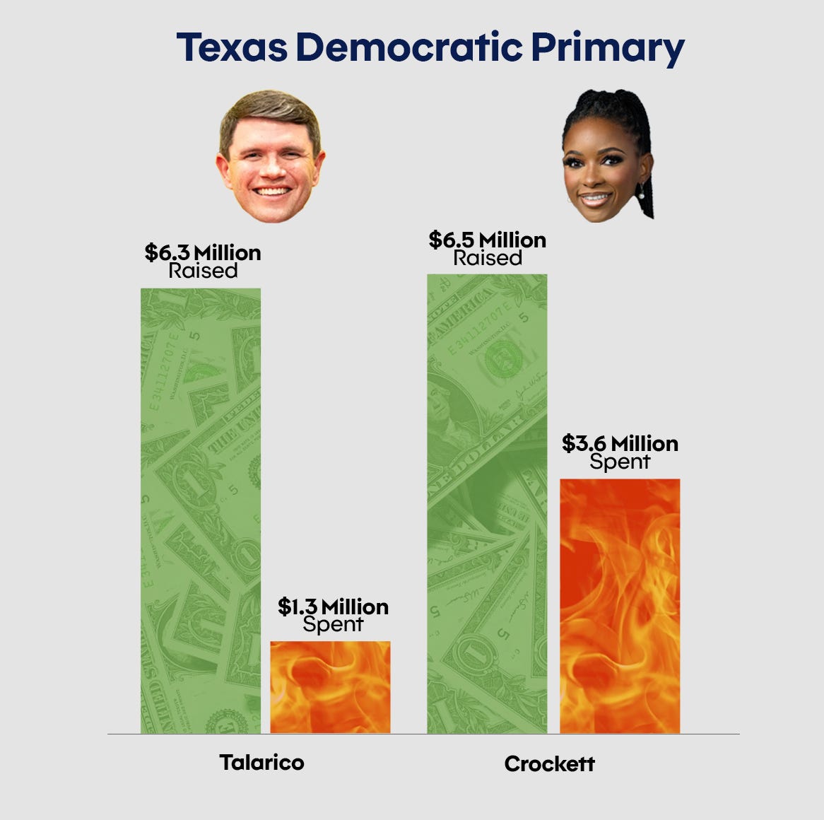Crockett spent $3.6m over that period, compared to just $1.3m for Talarico.