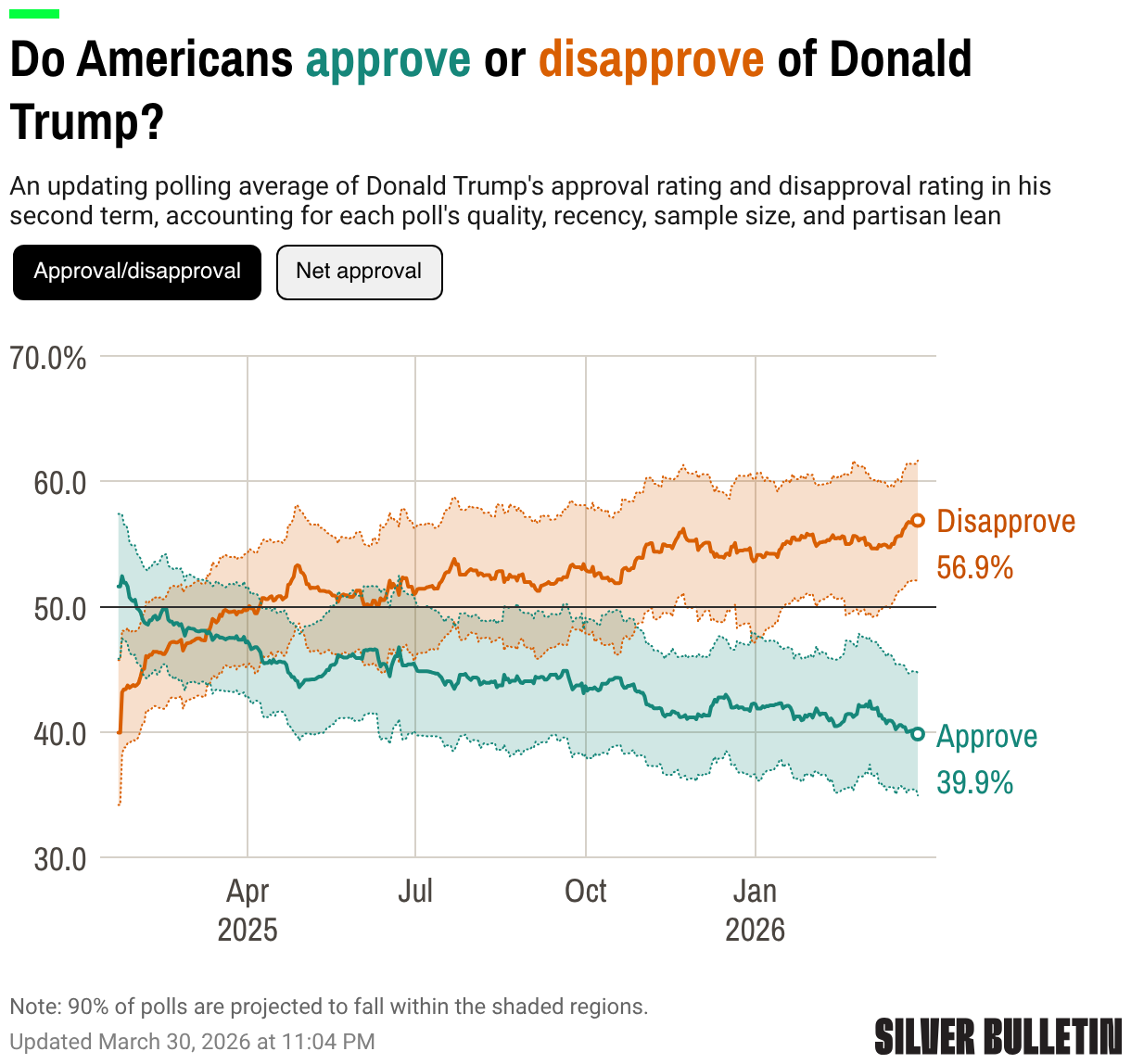Trump’s average approval rating dropped below 40% for the first time, according to Nate Silver: